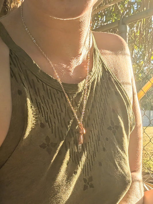 Shiny Copper Mushroom Quartz Crystal Pendant Necklace